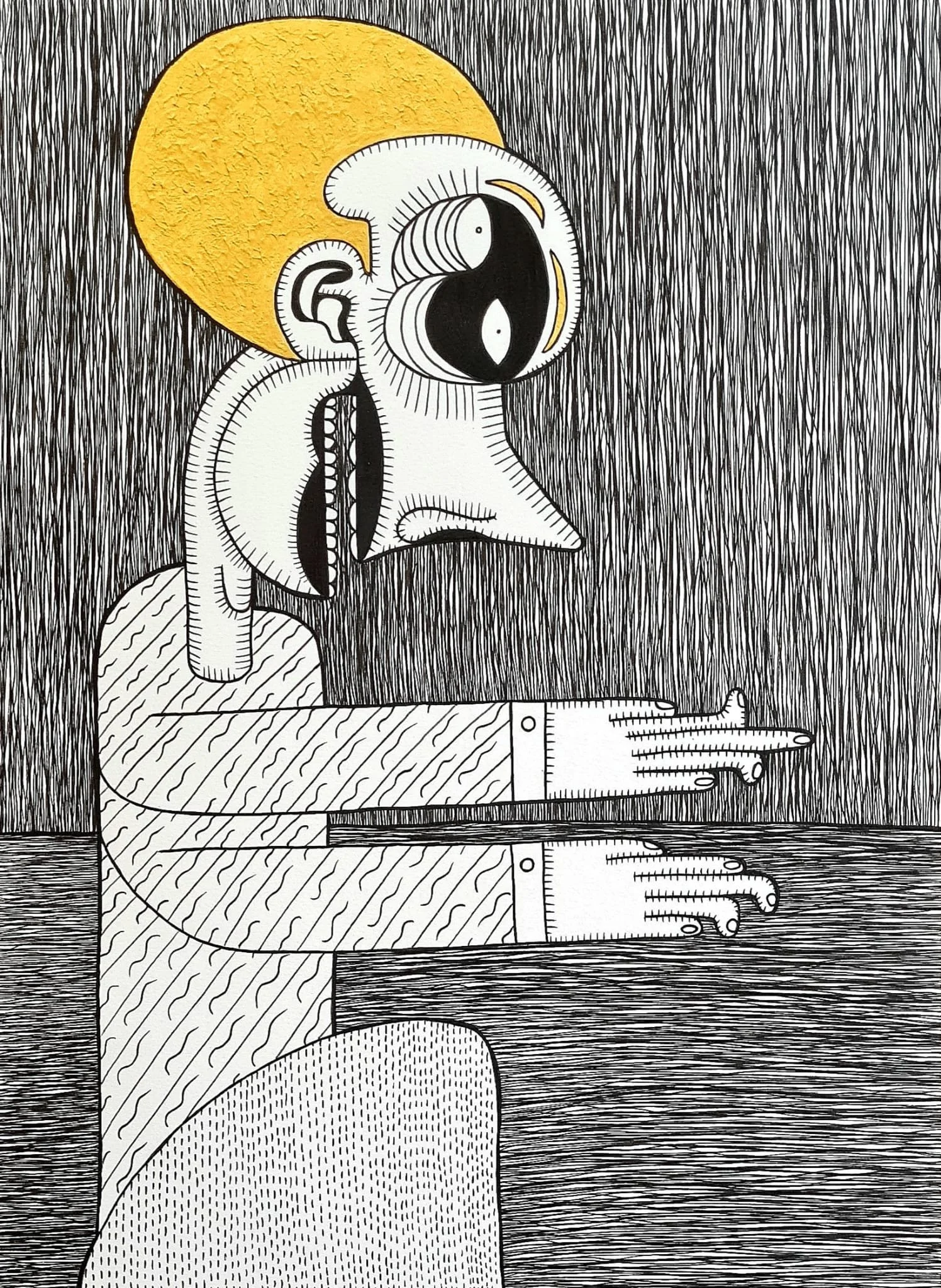 Este desarrollo deriva en la articulación de un mundo fantástico con destellos de realidad. Emergen mezclas de formas irregulares y líneas rectas; juegos de manchas y colores planos. Aparecen expresiones sugerentes de personajes anónimos, todo ello fruto de lo que solemos reprimir o ignorar.